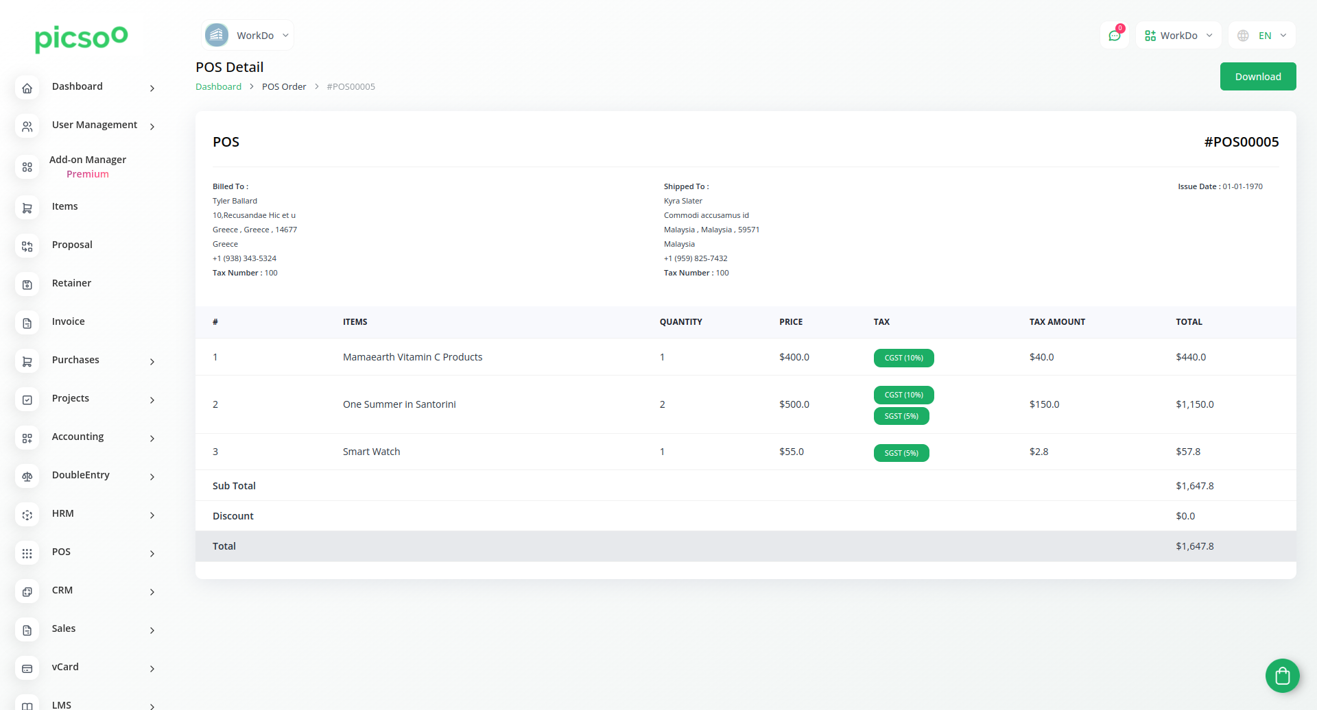 With the POS Module, tracking your revenue in real time has never been easier. At the top of the dashboard, you will find a dedicated section displaying the total sales amount. This feature allows you to monitor your revenue at a glance, empowering you to make informed decisions about your business is financial health. Whether you are analyzing daily, weekly, or monthly sales trends, our platform provides the tools you need to stay on top of your finances effortlessly.